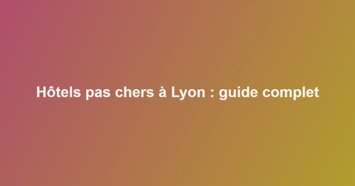 META DESCRIPTION : Cherchez-vous des hôtels pas chers à Lyon ? Notre guide complet vous aide à trouver où dormir à Lyon sans dépenser une fortune.