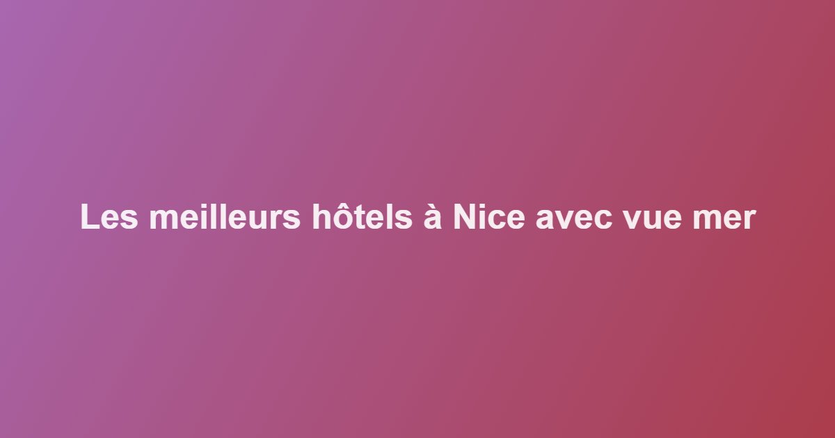 META DESCRIPTION : Les meilleurs hôtels à Nice avec vue mer. Découvrez où dormir à Nice face à la Méditerranée, des options luxe aux hôtels abordables.