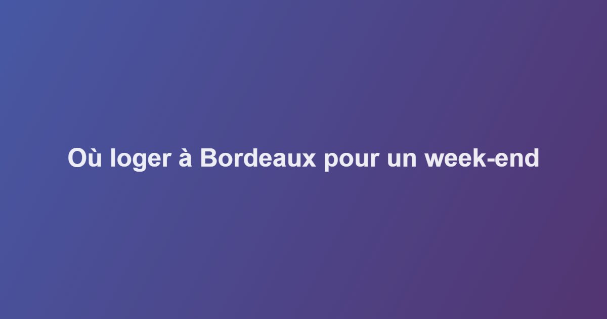 META DESCRIPTION : Où loger à Bordeaux pour un week-end ? Découvrez les meilleurs hôtels de Bordeaux par quartier et budget pour un séjour parfait.